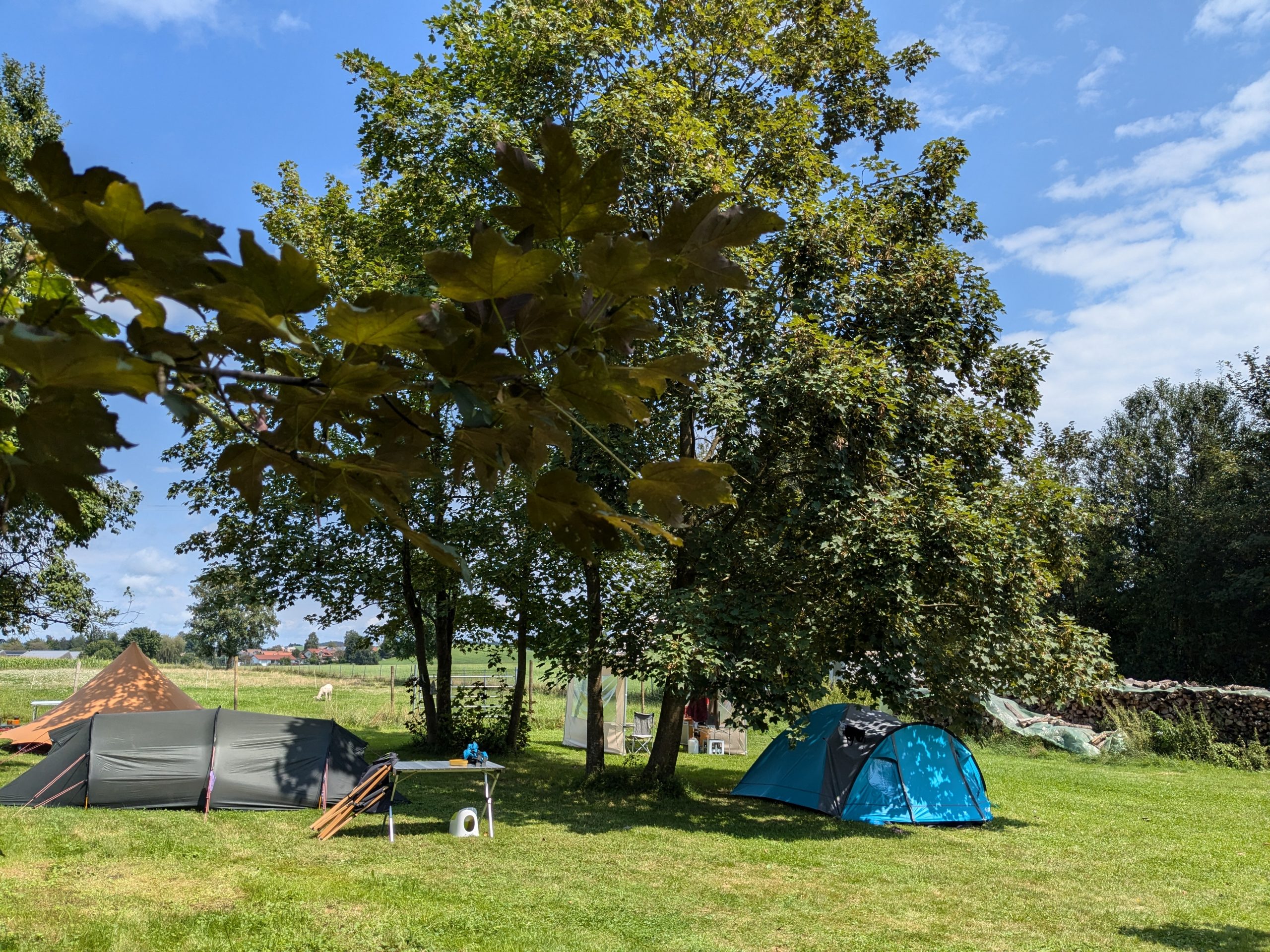 Auf unserem Biohof bieten wir eine Zeltmöglichkeit auf einer eingezäunten Obstwiese.